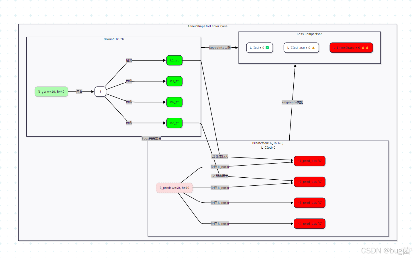 .backward()被调用时,L I n n e r S h a p e L_{InnerShape}LInnerShape 的梯度会同时流向 K n o r m p r e d K_{norm}^{pred}Knormpred(优化关键点预测) 和B p r e d B_{pred}Bpred(优化Bboxc x , c y , w , h cx,cy,w,hcx,cy,w,h以减少结构扭曲)。