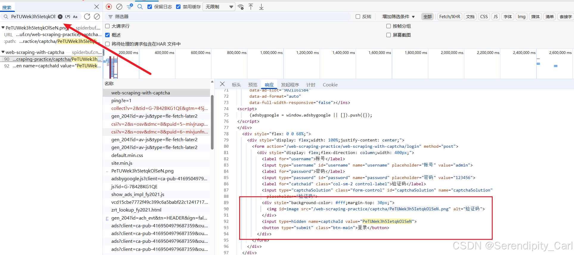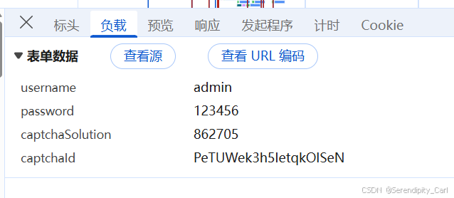 分析可得 Post方法 data表单数据中 传入验证码 以及验证码的id 就是前面在网页源代码中提取的一串英文