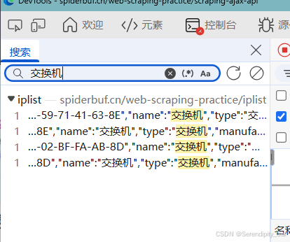 我们复制这一串 Ctrl+F 搜索 发现在请求这个页面中的源代码中有