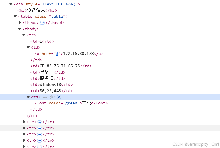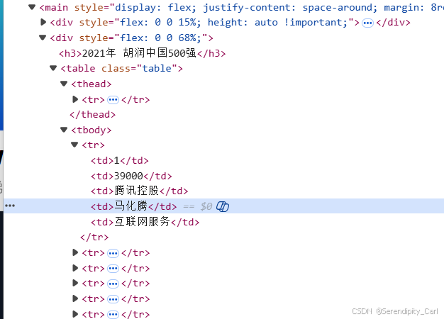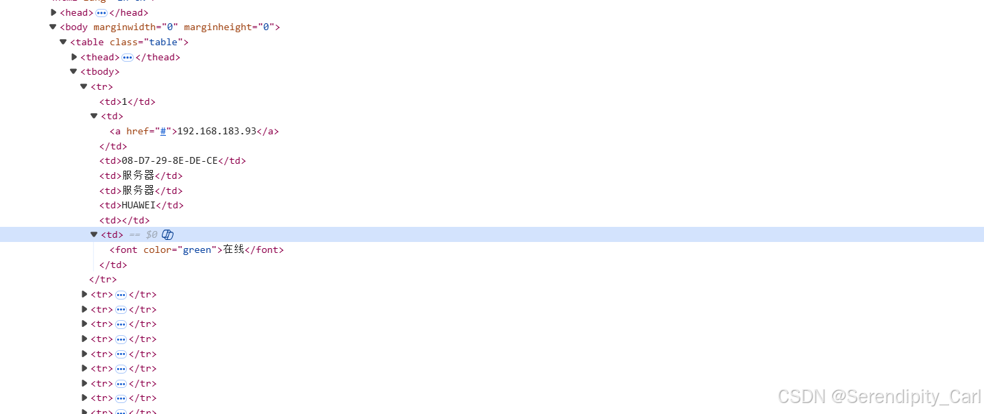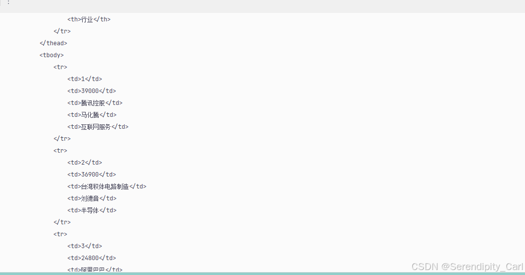 定位: class属性为table的table标签下面的tbody 里面的tr 此时刚好为十条返回结构 符合我们爬取数据的条数
