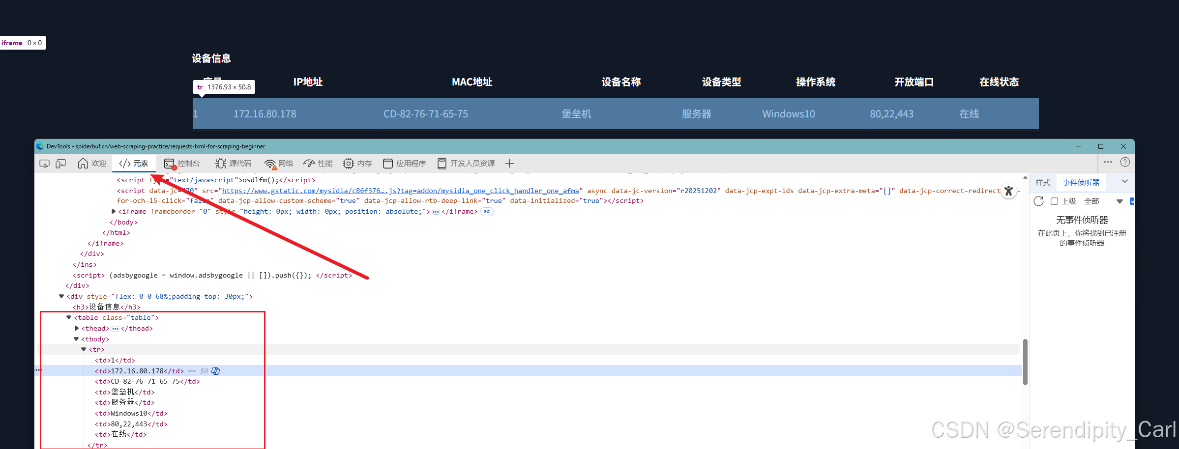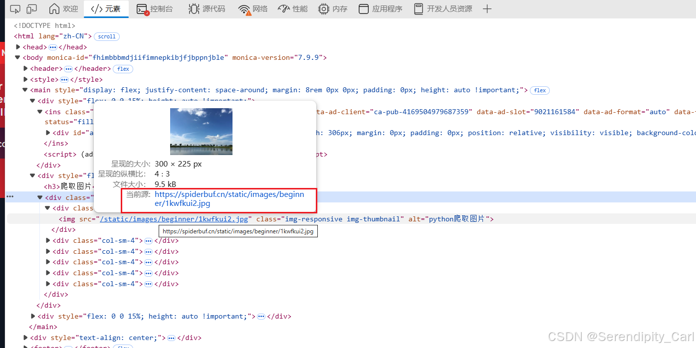 点击元素 左上角小箭头 选中我们想好爬取的数据 分析页面结构