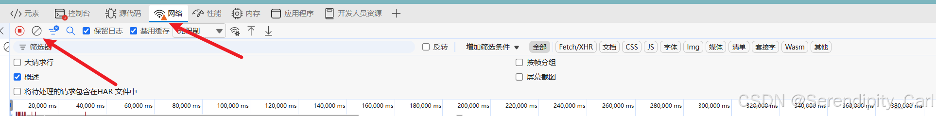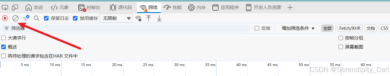 回到登录的页面 打开开发者工具 清楚当前所有的数据包(点击这个按钮)