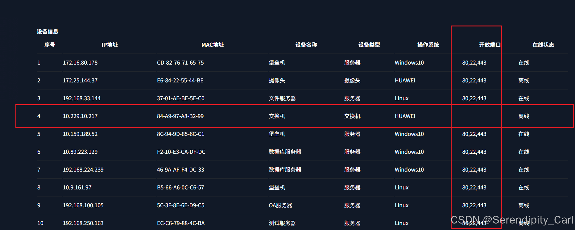 运行看到我们的数据 会发现开放端口那个字段 本身就有, 所以保存的数据有问题