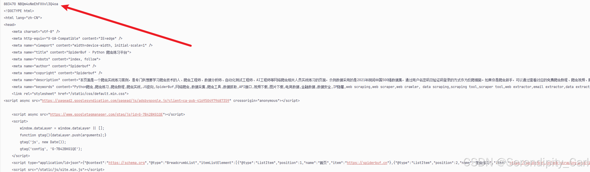 此时运行 即可看到页面的源代码 我们想要的数据也在其中