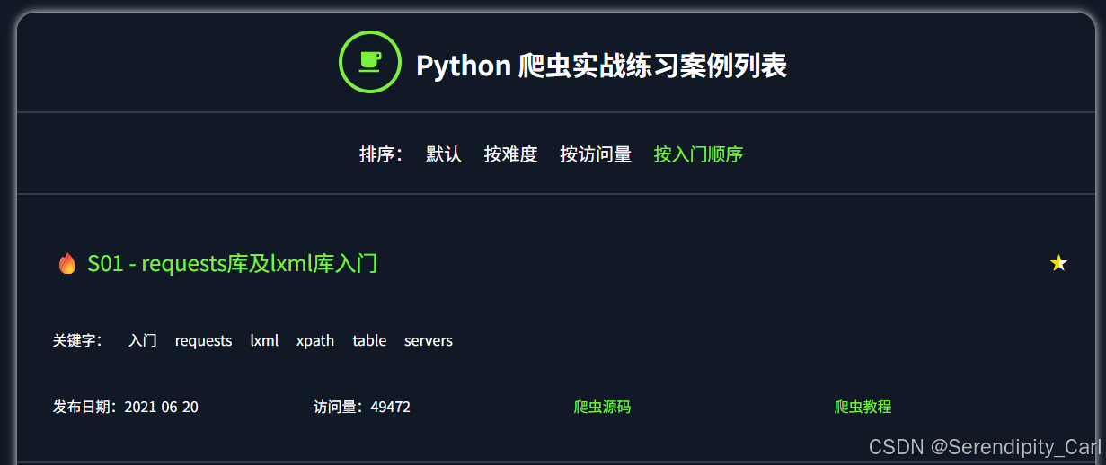 网站:Python 爬虫实战练习案例 - Python 爬虫练习网站