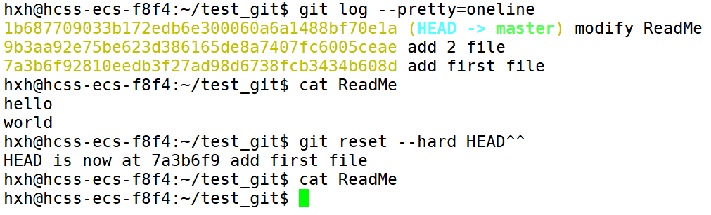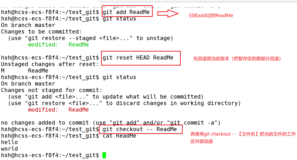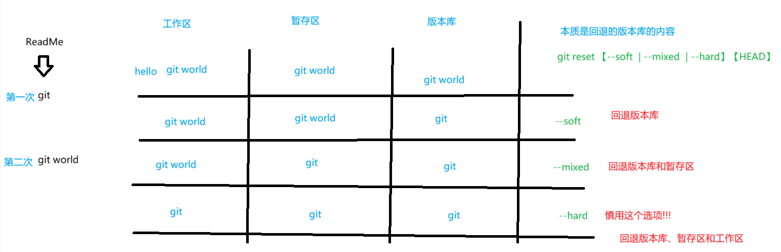 --mixed为默认选项,使用时能够不带该参数。该参数将暂存区的内容回退为指定提交版本内容,工作区记录保持不变。