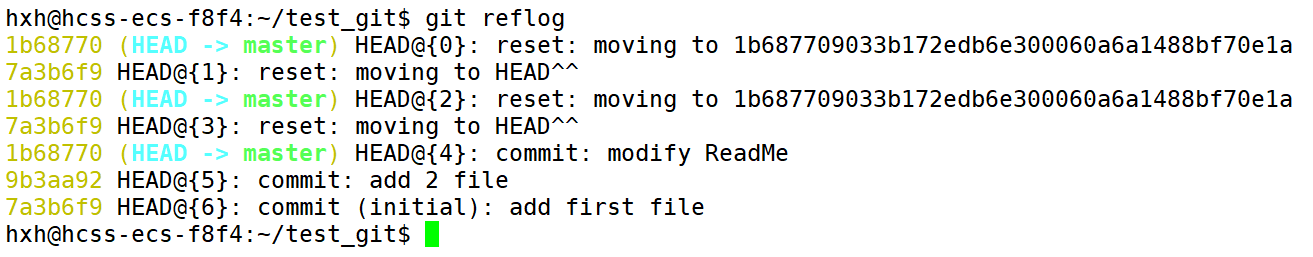 这里如果不小心用git rest --hard xxx,回退到初始版本了,可以用git reflog查看以前的版本。
