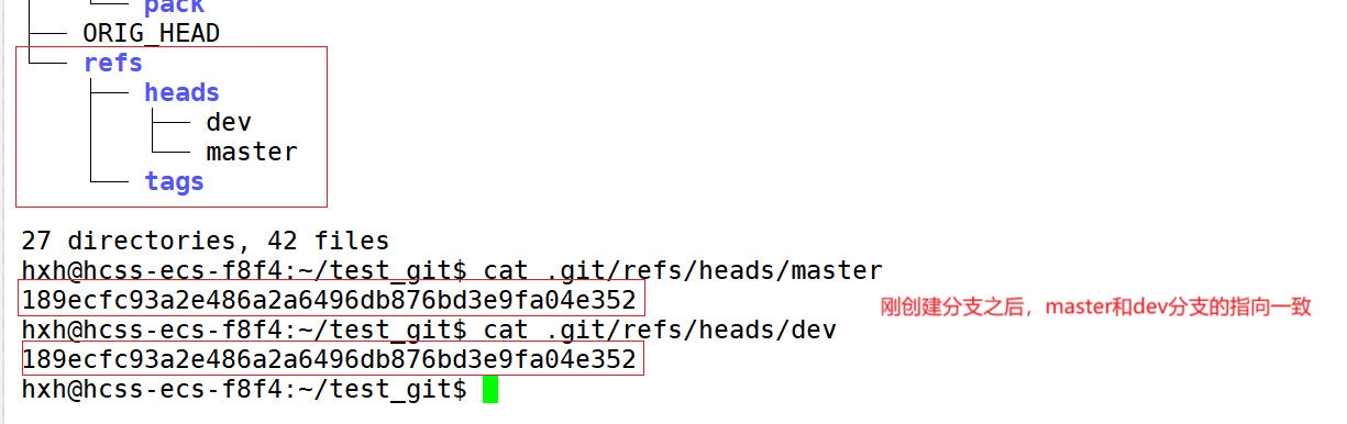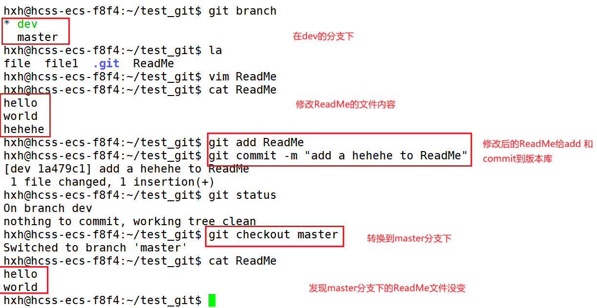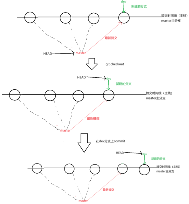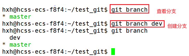 git checkout -b dev创建分支并转到此分支下,相当于先git branch dev 再git checkout dev。