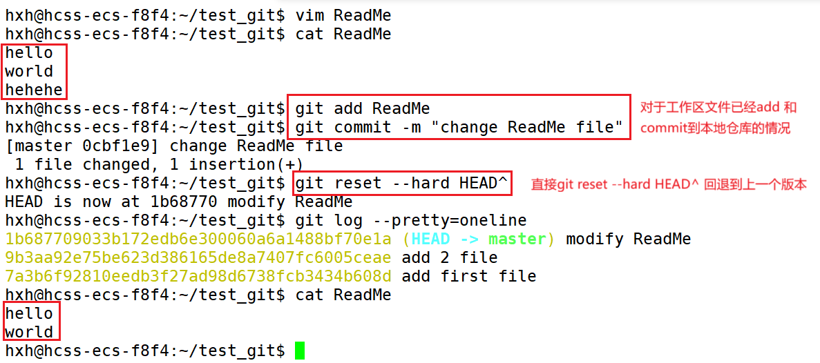 情况三:当前工作区的代码,已经add,也已经commit到仓库了。