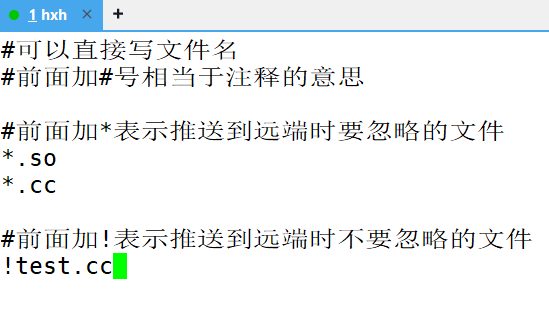 首位加#号,代表注释的意思。首位加*代表推送到远端时要忽略的资料。首位加!代表推送到远端时不要忽略的文件。