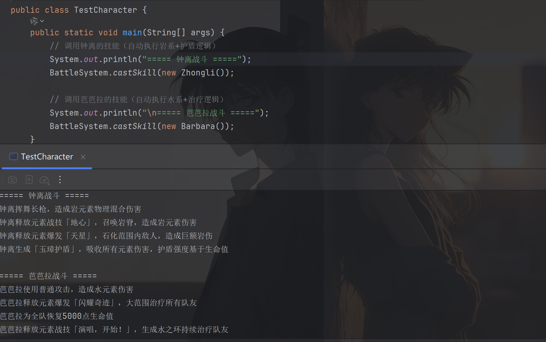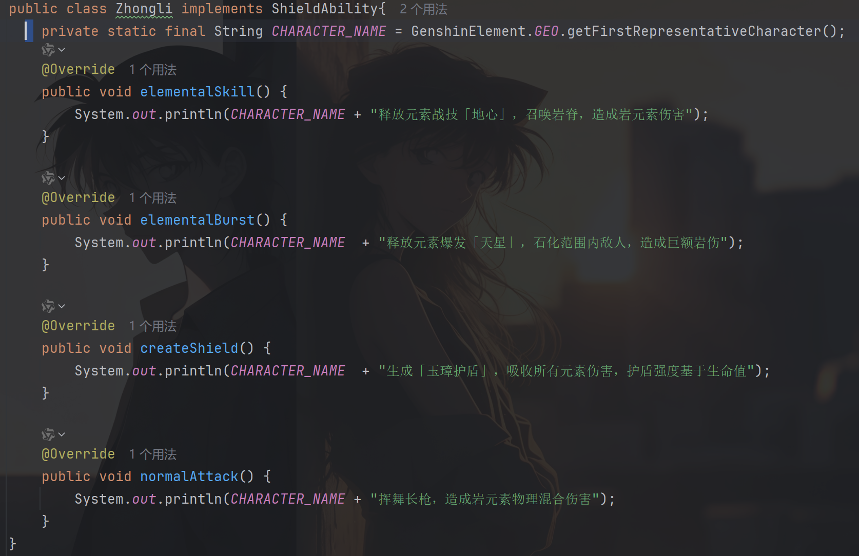 步骤 2:具体角色构建接口(目的:让不同角色按自身特性实现差异化技能逻辑,比如钟离的 E 技能生成护盾,芭芭拉的 E 技能回血,且新增角色时只需新增实现类,无需修改战斗系统核心代码)