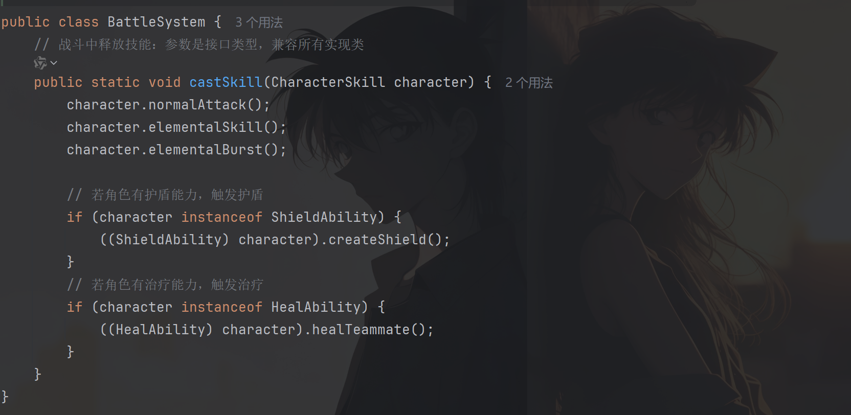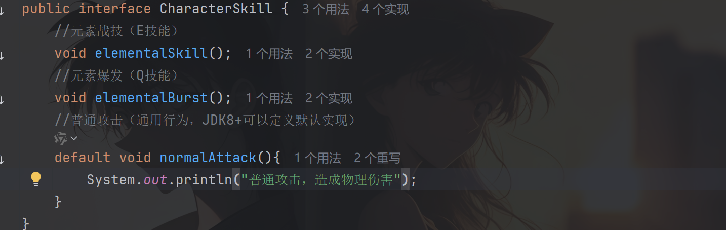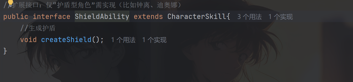 以下我将结合原神的核心玩法场景,从「接口的定义、核心应用场景、实战代码、设计优势」四方面详细拆解:
