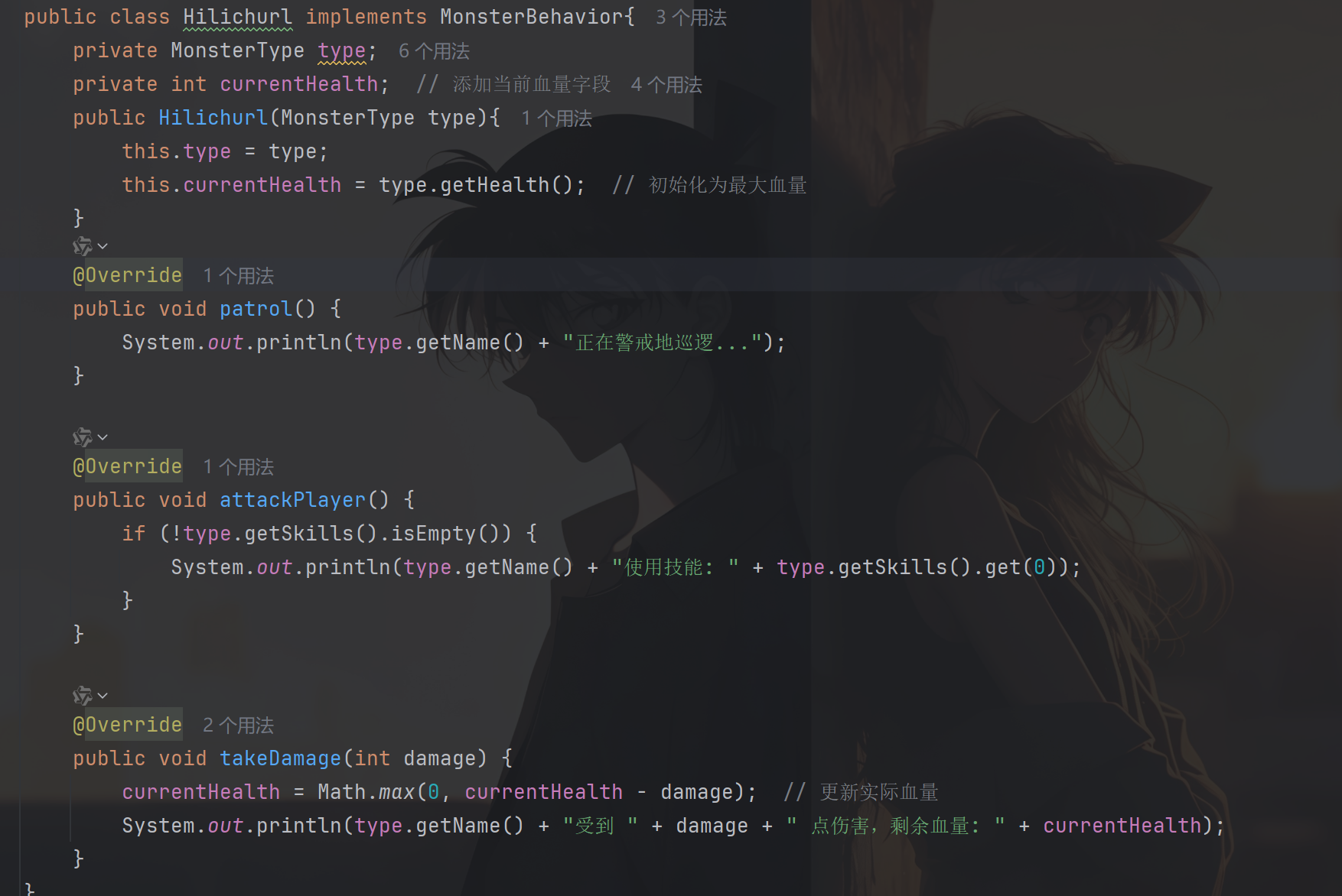 步骤3:创建怪物类(目的:不同怪物达成接口,差异化实现巡逻、攻击逻辑,比如史莱姆弹跳攻击,丘丘人挥棒攻击)