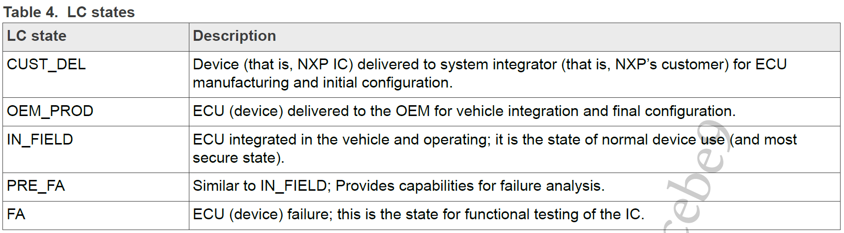 以上LC的状态为FA lifecycle和PRE_FA life cycle只能由NXP来演进。