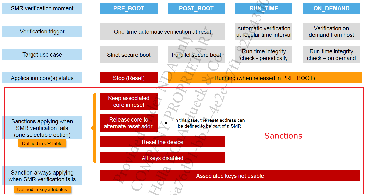 如果至少有一个pre-boot阶段的SMR区域验证失败,HSE使用CR入口的sanction进行处理。