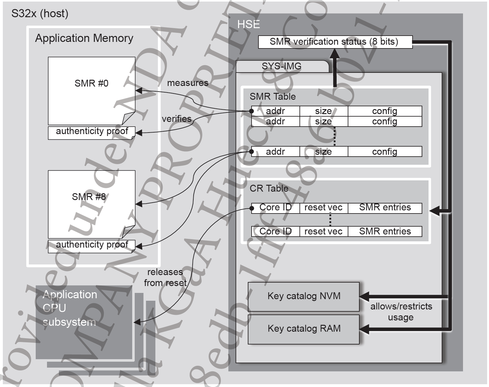 在所有设置的CPU子系统已经启动且boot阶段之后,HSE通过CR表的pCrEntry->postBootSmrMap,对链接的SMR区域进行验证。如果验证失败,根据配置的sanction进行处理。