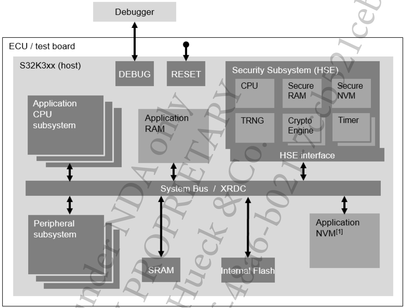 - Secure NVM: 由HSE子系统独占访问的NVM资源,包括如代码,内容和部署的flash区域