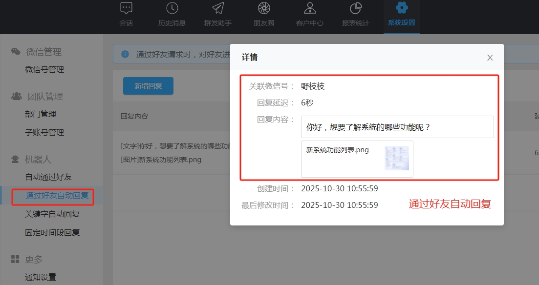 好友请求通过后自动打招呼:抢占沟通 “黄金 3 秒”,零延迟触达,建立第一印象,粉丝留存率提升 30%。