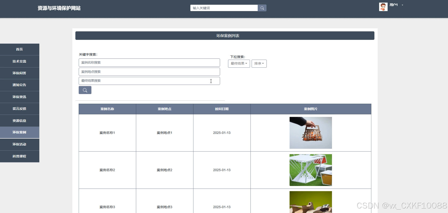 - 环保案例管理:管理环保案例的发布、修改和删除。