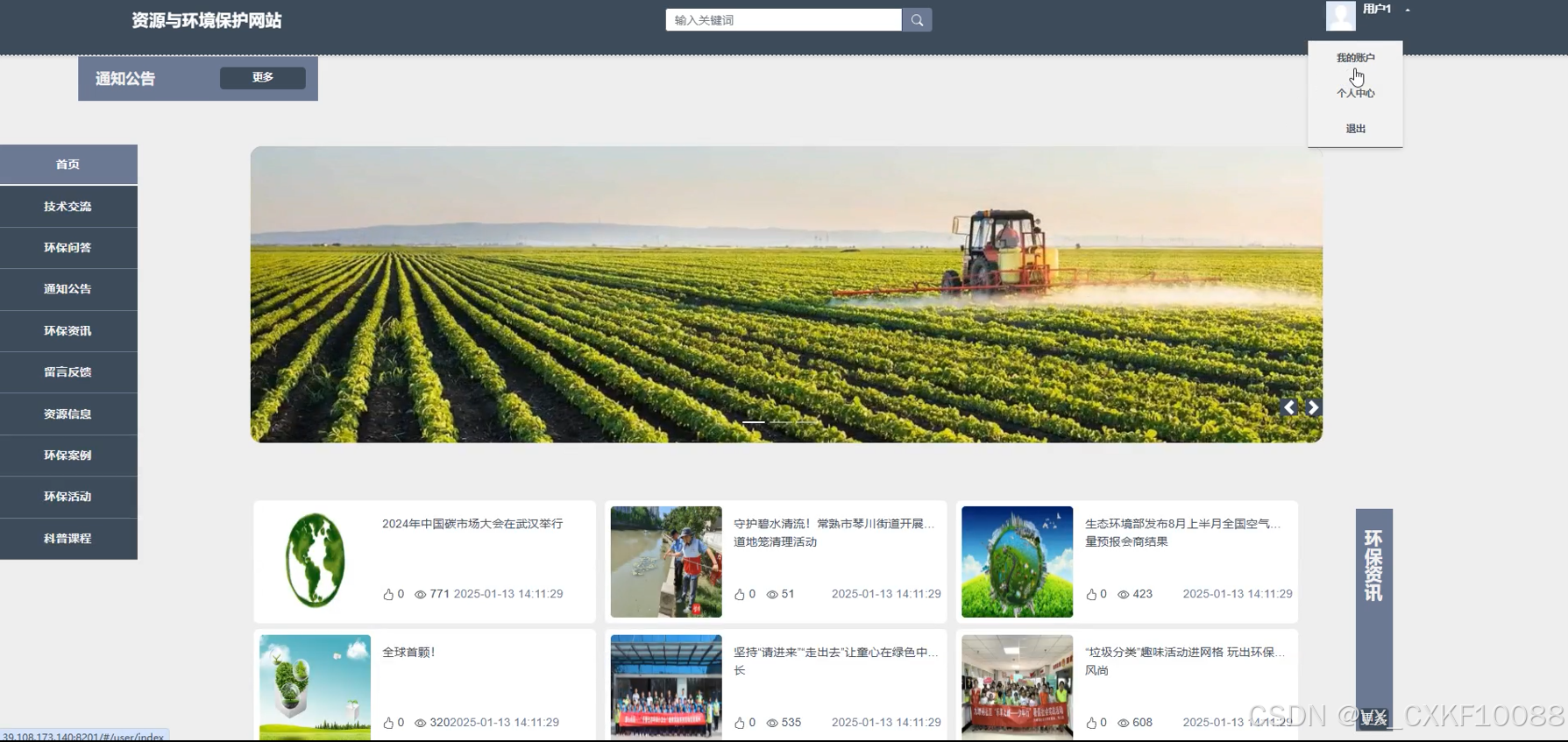 总之,本任务成功构建了一个基于Spring Boot的资源与环境保护网站,不仅提升了环保信息的传播效率,还增强了用户的参与感和互动体验。未来的工作将集中在进一步优化系统性能和扩展更多实用功能,以更好地服务于环境保护事业,推动社会的可持续发展。借助这一平台,我们希望能够激发更多人参与到环保行动中来,共同守护我们的地球家园。