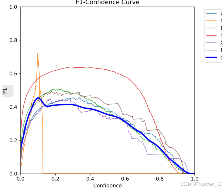 F1分数是精确率和召回率的调和平均值,它综合考虑了两者的性能指标。F1值曲线行协助我们确定在不同精确率和召回率之间找到一个平衡点,以选择最佳的阈值。