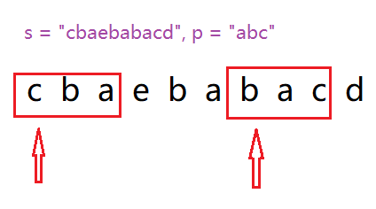 给定两个字符串 s 和 p,找到 s中所有 p的 异位词 的子串,返回这些子串的起始索引。不考虑答案输出的顺序。异位词 指由相同字⺟重排列形成的字符串(包括相同的字符串)。