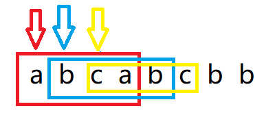 聪明的同学肯定发现了这个题目和上面的有异曲同工之妙,当a为起点枚举到abca后此时的最长不重复子串是abc,所以到b为起点进行枚举,bcab,然而这之间重叠了a为起点而枚举的一部分,所以当枚举b的时候我们可以在a以及枚举的区间把第一个a移出去,那么此时bca这个区间内就没有相同的值了,也就是出窗口操作。接着这个区间继续遍历下一个字符,也就是进窗口的操作。只有当区间内的字符出现了重复才会出窗口,那么此时出窗口和进窗口的逻辑关系我们都理清了,我们只需要在出了窗口以后跟新结果即可,因为此时必然不会出现重复字符。