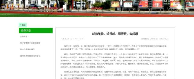 用户点击公告信息,用户行浏览管理员发布的公告信息,并进行收藏、点赞、查看上一篇、下一篇文章等;如图5-5所示:
