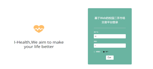 本模块首要是使用者可以通过校园二手市场交易平台的首页进入该系统。用户输入正确的账号名和密码,一旦输入信息有错,将在环境显示错误提示,同时严禁系统用户做出其他动作。如果注册信息正确无误,平台就会按照使用者的身份信息做出有关权利的判定,用户则进入后台系统。用户登录主页面如图5-14所示: