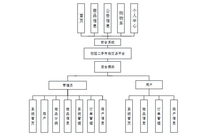 此体系是由在校大学生开发的校园二手市场交易平台。此架构在开发方式上对系统的需求,由于校园二手市场交易平台是一种无商业利益的,所以系统设计开发的周期要短,在短时间内完成,减少开发成本,提高研发效率,方便、容易、实用是作为架构开发的指导思想。