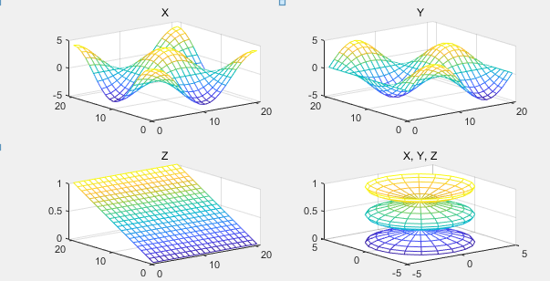 subplot(2,2,4); mesh(X,Y,Z); title('X,Y,Z');