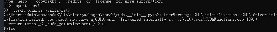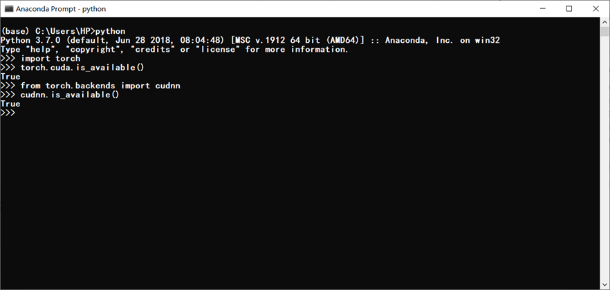 在自己的环境下(我这里是base),使用shell窗口进行python的交互模式,输入以上指令,如果都是True就说明Cuda和CUDNN都以安装完成。