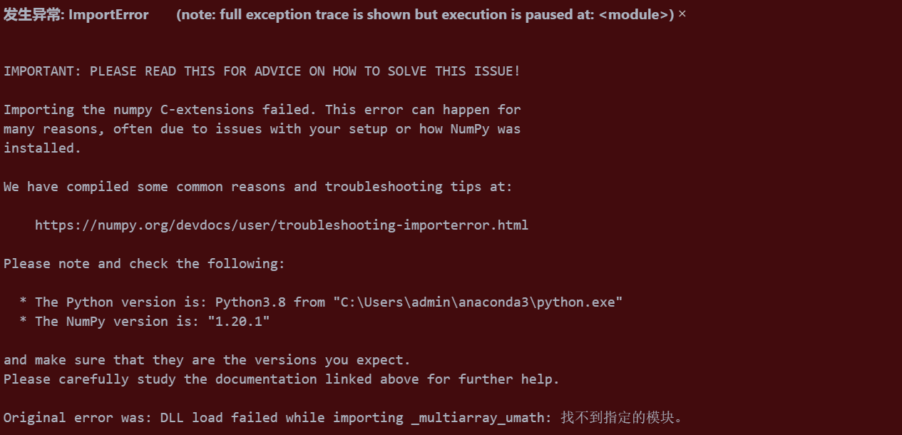 python和numpy版本过高,导致编译器中import pytorch时出现错误。