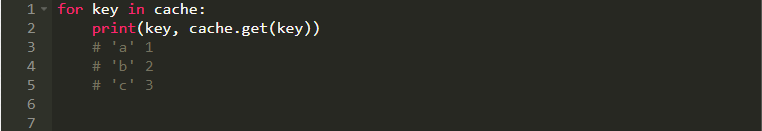通过cache.keys(), cache.values(), and cache.items()获取所有的键、值、以及键值对: