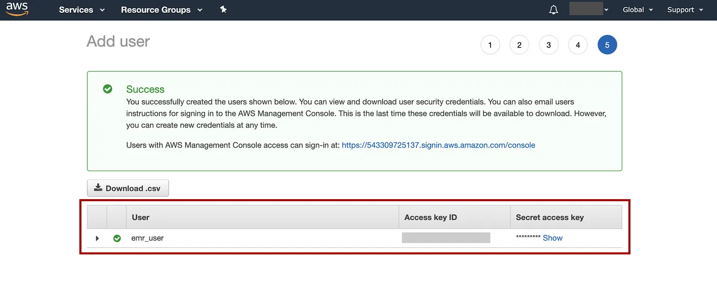 请注意,为了获得最佳性能并避免任何错误,请记住对所有工作使用相同的 AWS 区域/子区域(在 S3、EC2、EMR 等上)