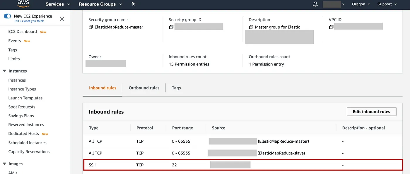 选择Security group IDElasticMapReduce-master