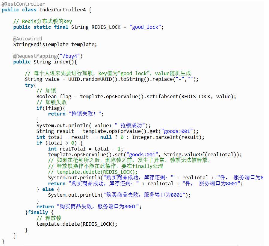 取消单机锁,下面使用redis的set命令来实现分布式加锁