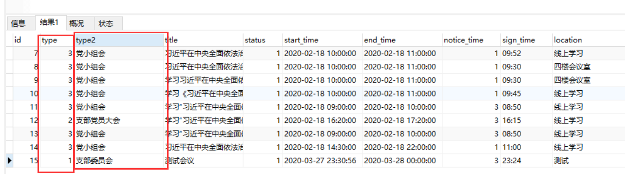 SELECT *, (CASE type WHEN 1 THEN "支部委员会" WHEN 2 THEN "支部党员大会" WHEN 3 THEN "党小组会" WHEN 4 THEN "党课" WHEN 5 THEN "主题党日活动" ELSE "组织生活会" END) type2 FROM os_meeting ;
