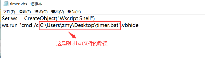 ws.run "cmd /c C:\Users\zmy\Desktop\timer.bat",vbhide