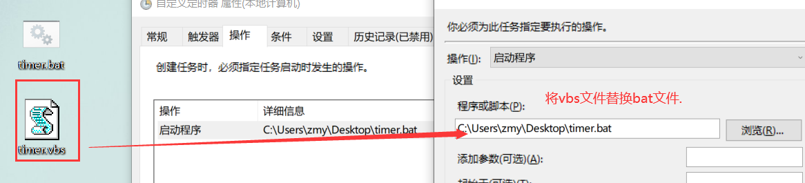 - 将windows里的计划任务bat文件改为此vbs文件.