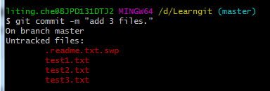 4.用touch创建三个txt文件后,用commit命令提交到仓库,报$ git commit -m "add 3 files." On branch master Untracked files: