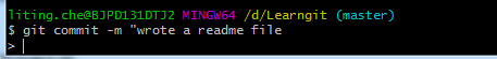 2.输入下面(git commit -m "wrote a readme file")命令后,出现>,无法退出