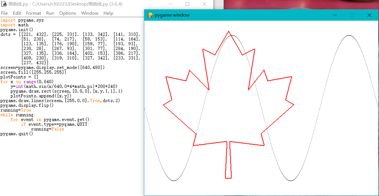 所以,在我们的正弦曲线例子中,pygame.draw.lines() 方法是这样的: