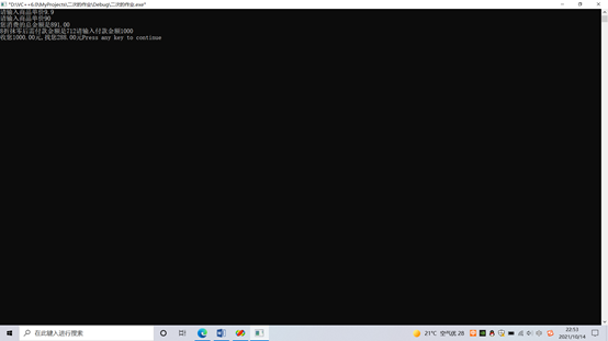 printf("请输入付款金额");