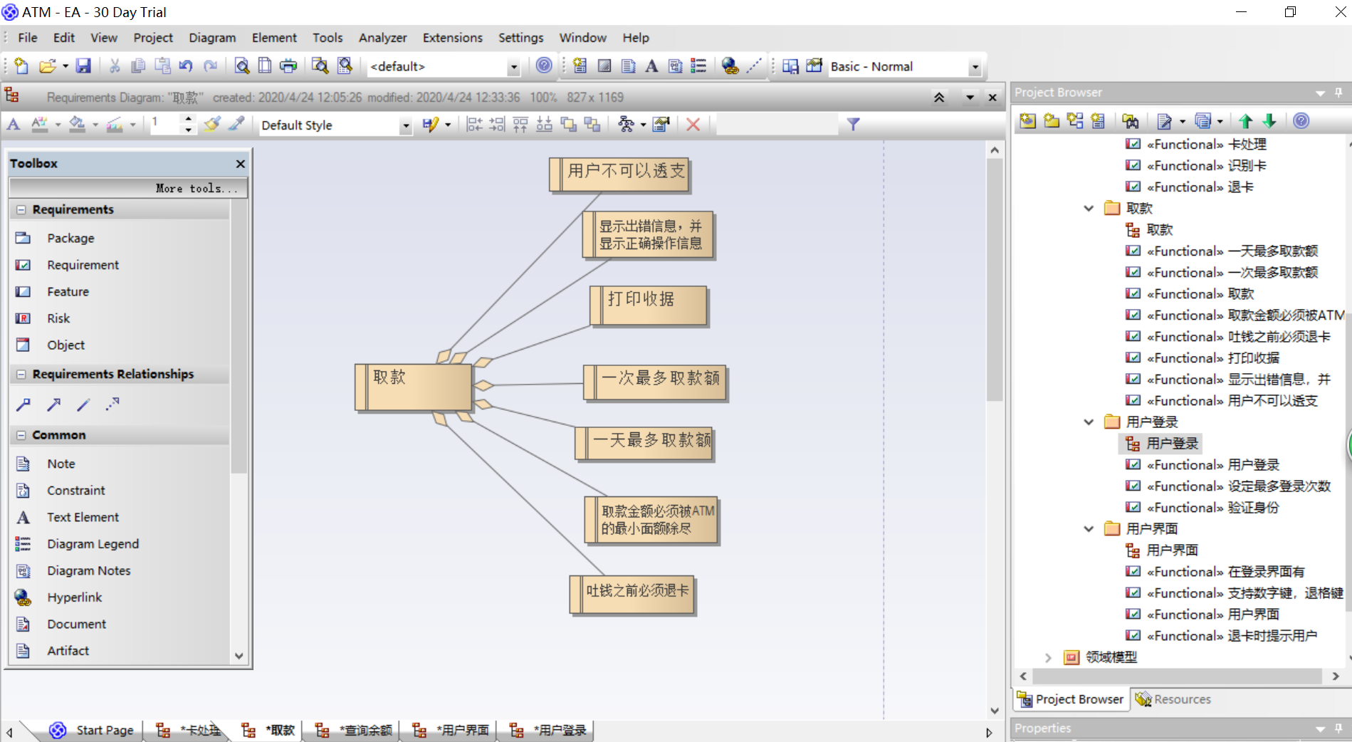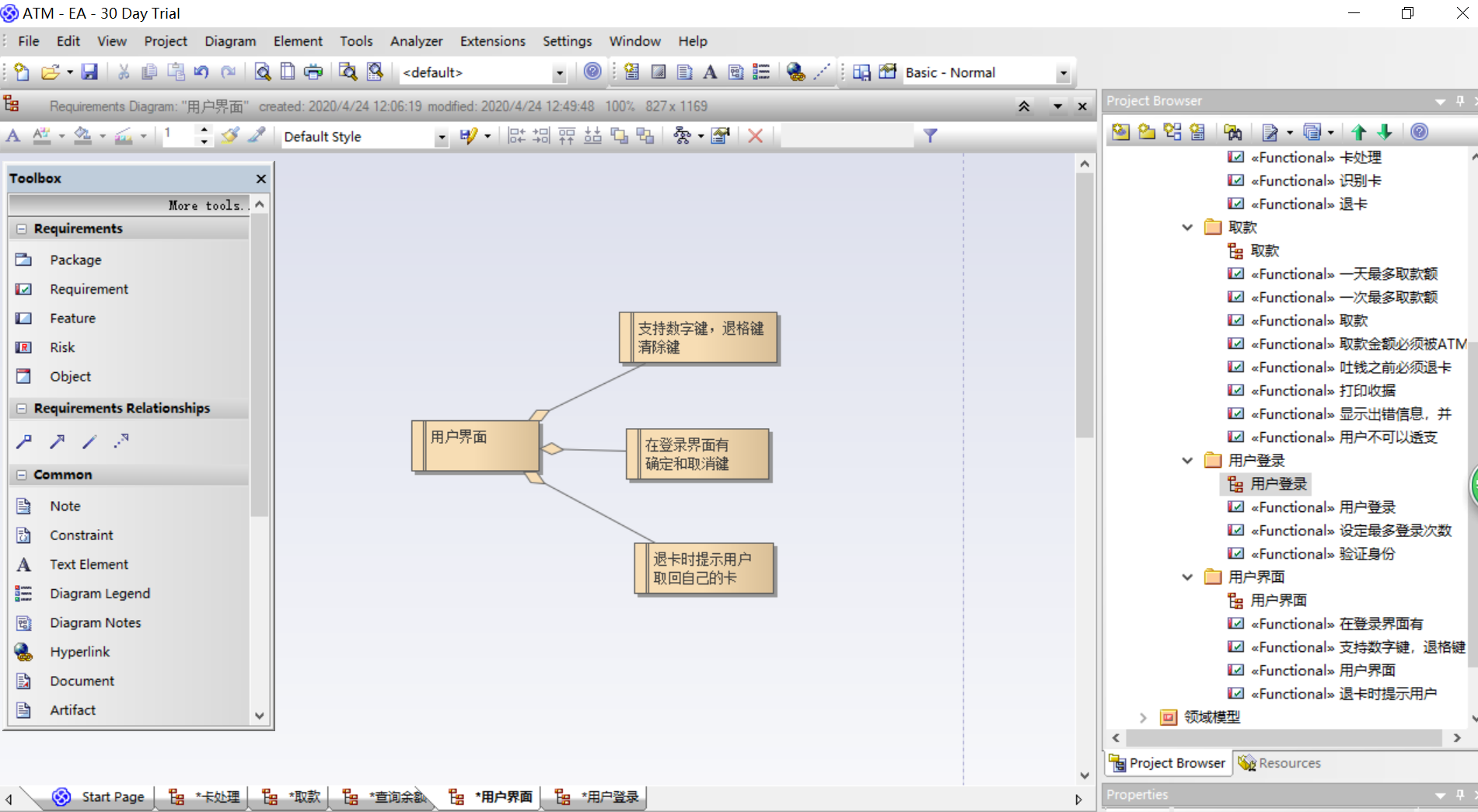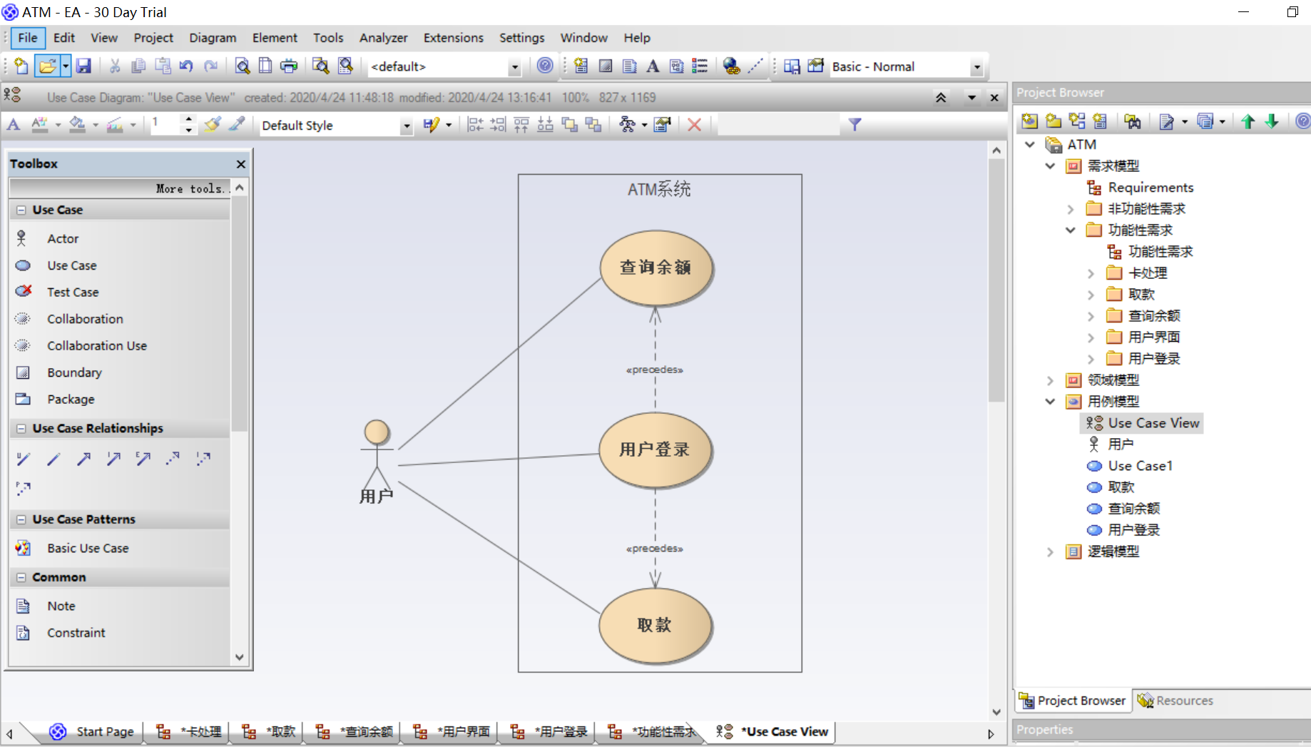 2. 采用EA工具完成以下ATM示例系统的UML模型的建立。