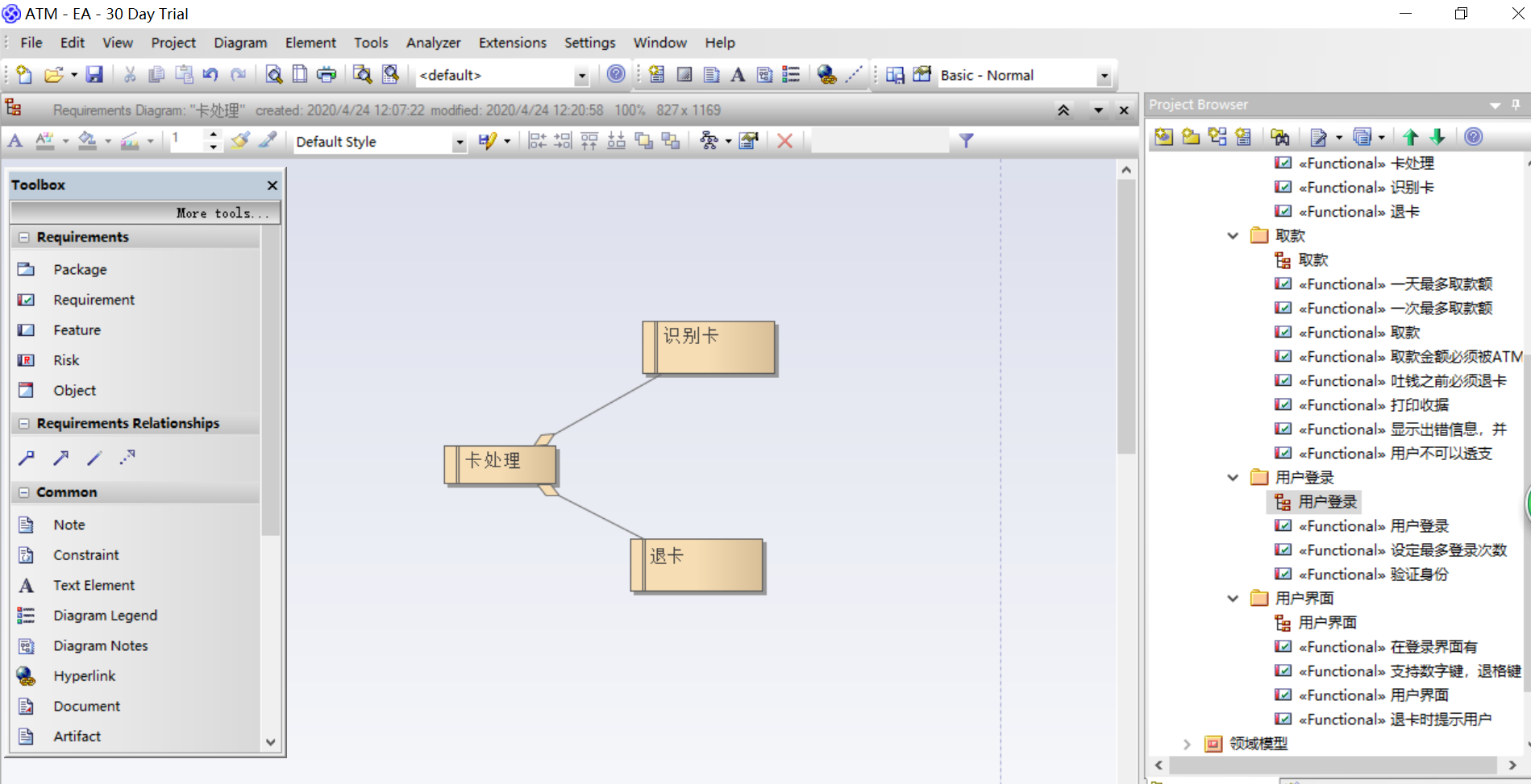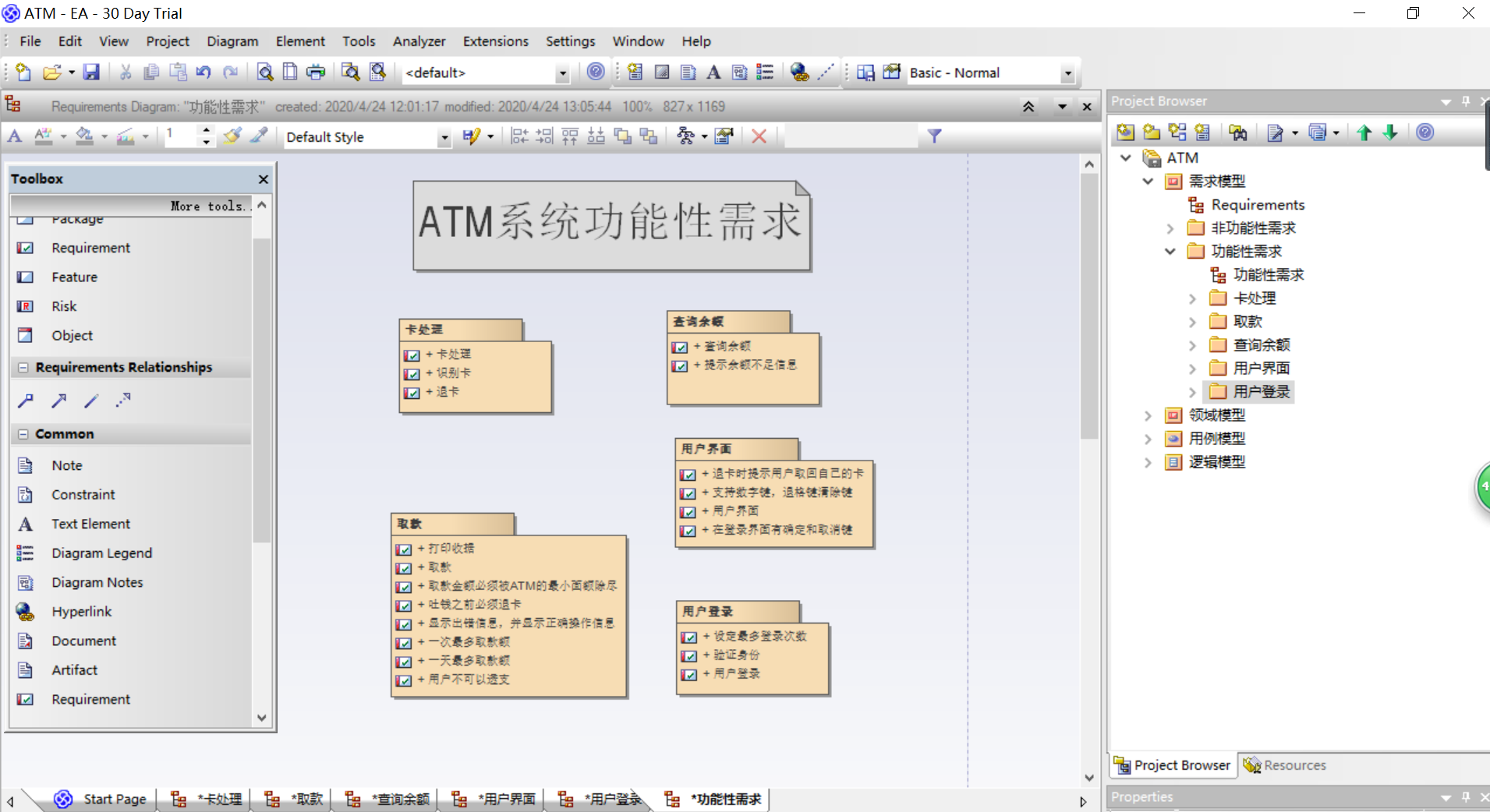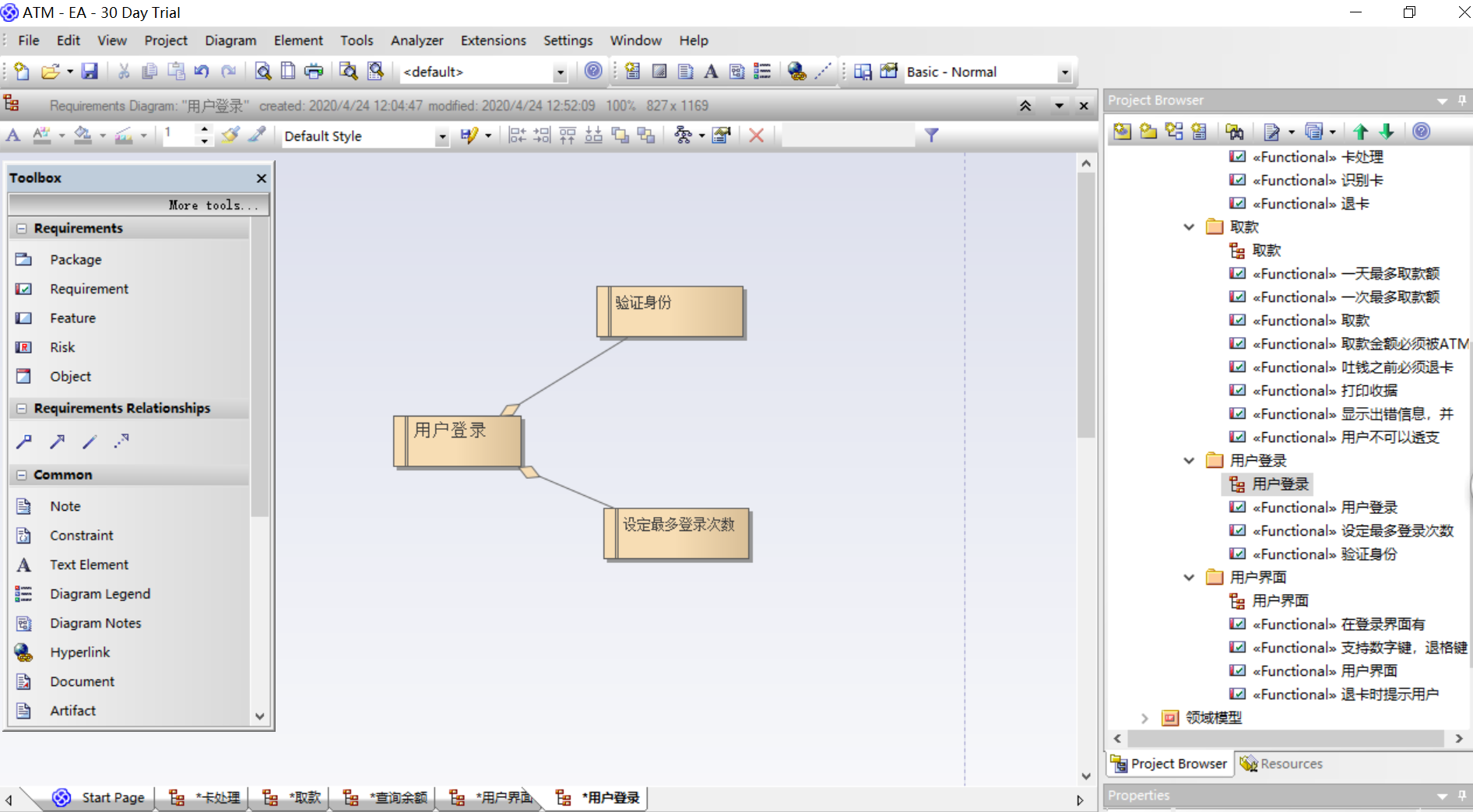 2. 采用EA工具完成以下ATM示例系统的UML模型的建立。