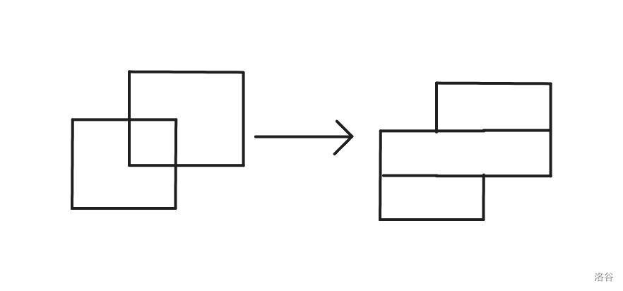像这样,把多个相交矩形转化成不相交的矩形面积和。