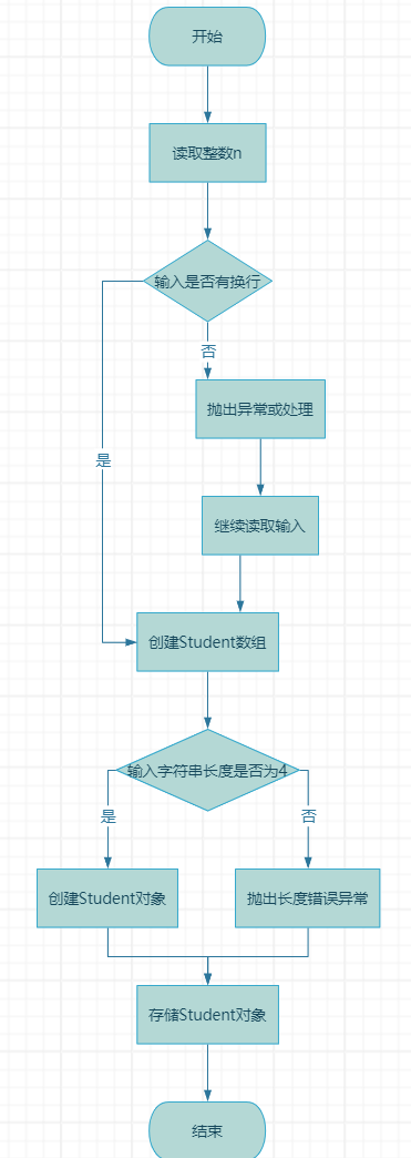 在main方法中,通过Scanner读取输入的学生数量n,再循环读取n行学生信息数据。对每行数据进行处理,判断数据个数是否为 4,若不符合则抛出异常;若符合则尝试创建Student对象,过程中捕获可能出现的解析异常。最后输出学生列表。