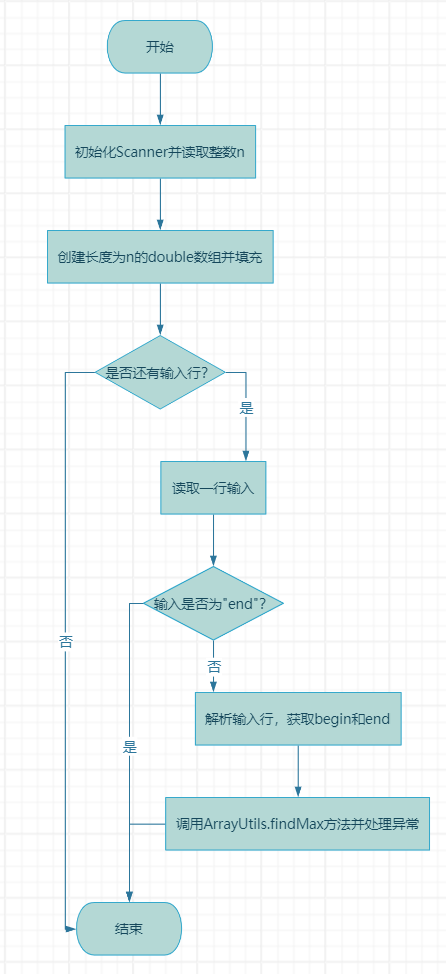 - 输入若干对整数,代表begin与end,然后调用ArrayUtils.findMax方法。当输入的不是整数类型字符串,则退出输入循环。