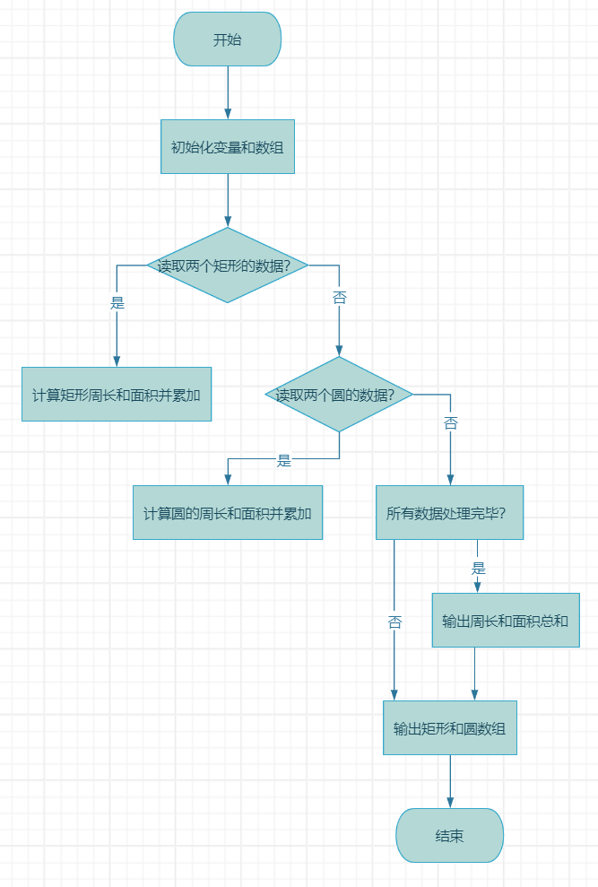- 输入输出处理:在main方法中,借助Scanner类从控制台读取用户输入的长、宽和半径数据。根据输入创建Rectangle和Circle对象,并将其存入相应数组。同时,累加每个对象的周长和面积,最后使用Arrays.deepToString输出数组内容,保证输入数据的有效利用和输出格式的规范性。